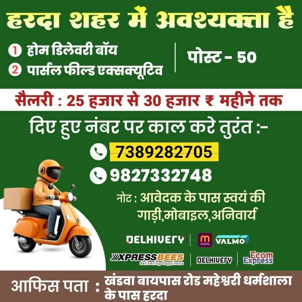 हरदा शहर में आवश्यकता है 50 पोस्ट के लिए !