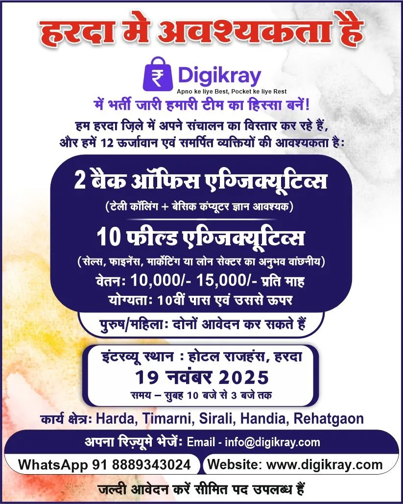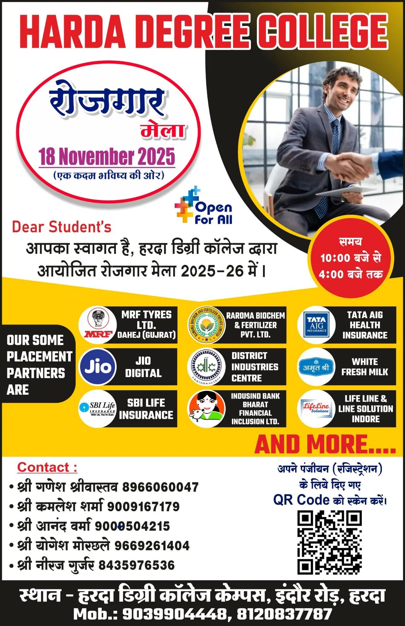 Blog हरदा में 2025 का सबसे बड़ा रोजगार मेला 18 नवंबर 2025 डिग्री कॉलेज हरदा में .. ! November 10, 2025 No Comments