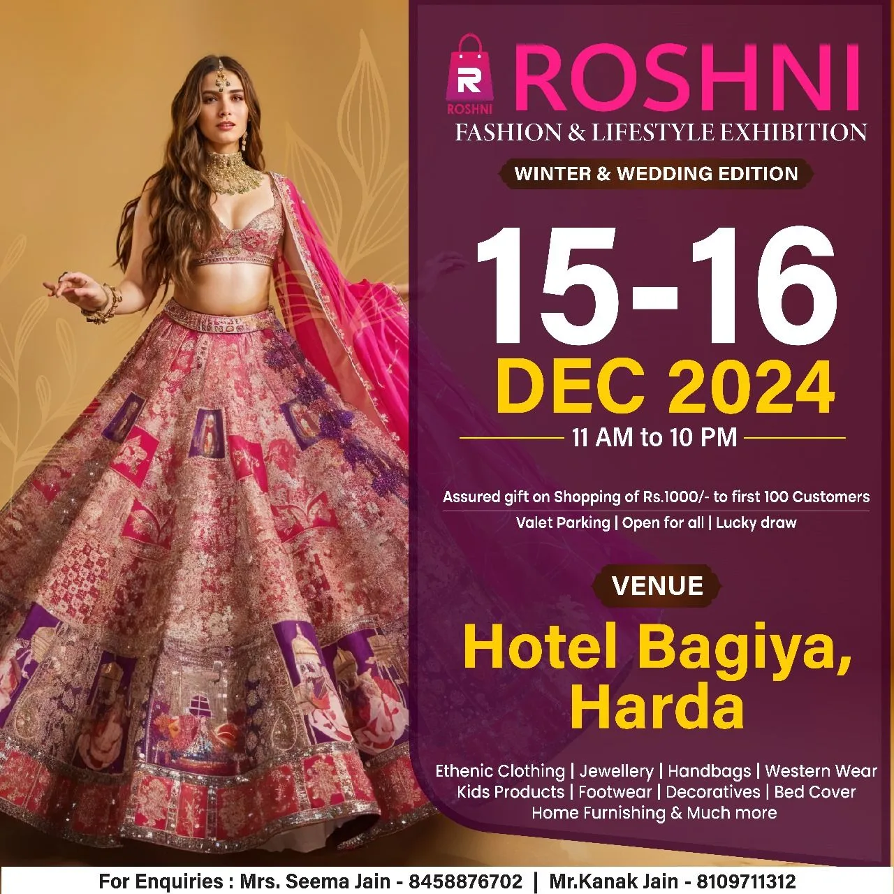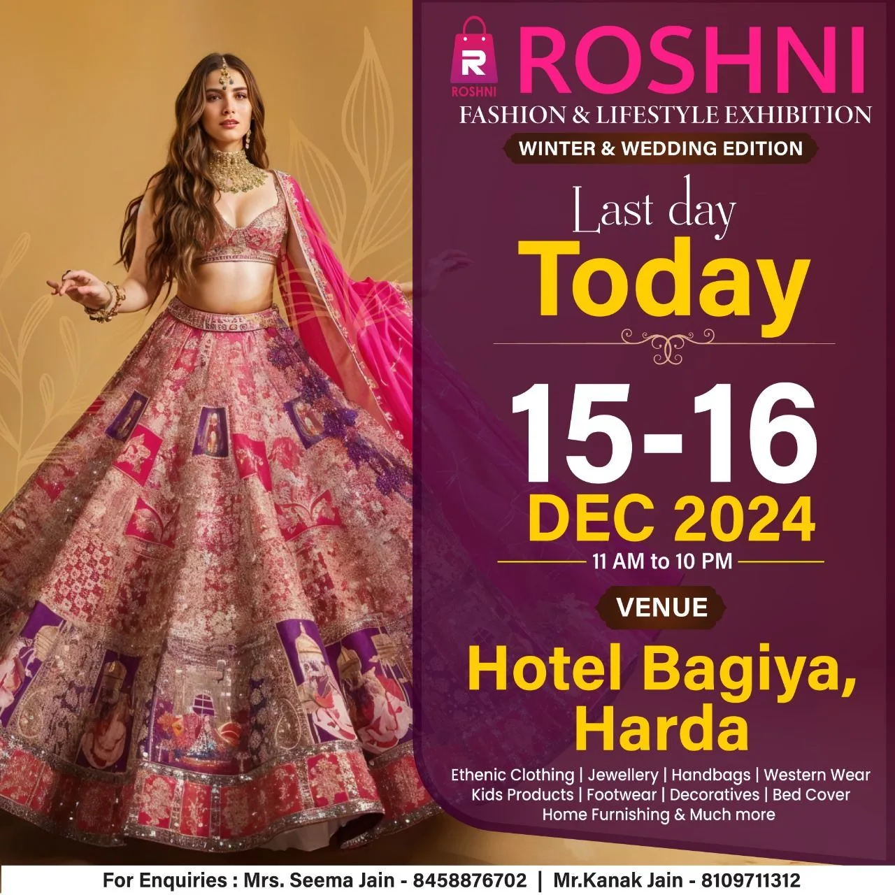 Blog हरदा शहर में 15 और 16 दिसंबर को होटल बगिया में लगने जा रही है रोशनी फैशन एंड लाइफ स्टाइल एक्जीबिशन ! December 14, 2024 No Comments