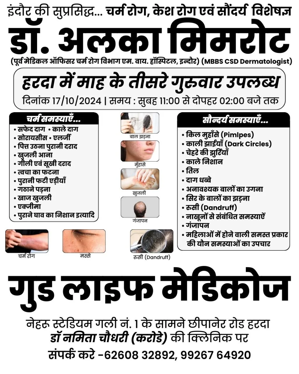 Blog हरदा : चर्म रोग विशेषज्ञ डा अलका मिमरोट 17 अक्टूबर गुरुवार को गुड लाईफ मेडिकोज पर उपलब्ध रहेगी October 15, 2024 No Comments