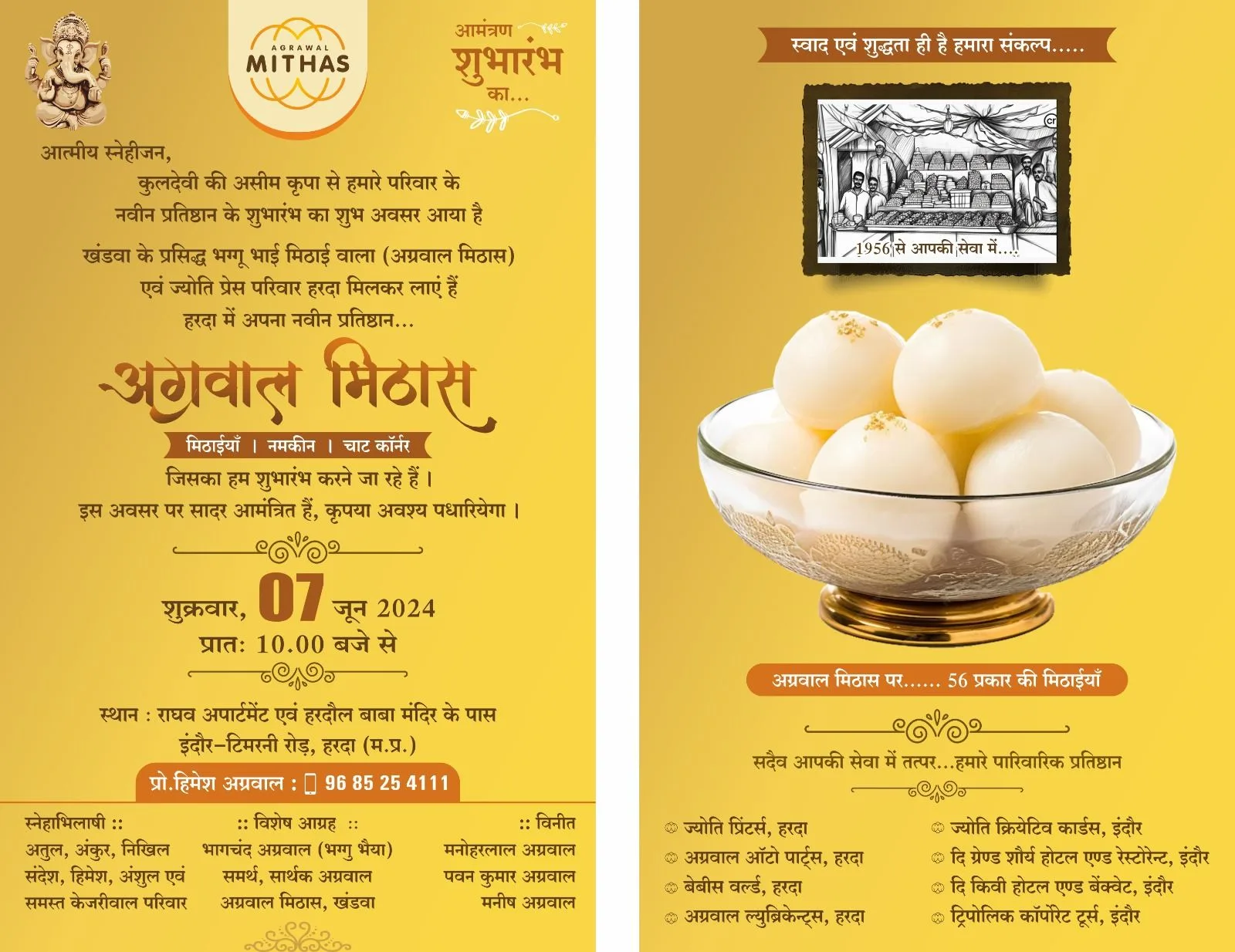 Blog हरदा में स्वाद एवं शुद्धता के साथ मिठास की नई शुरुआत हरदा अग्रवाल मिठास का शुभारंभ 7 जून से …..! June 3, 2024 No Comments